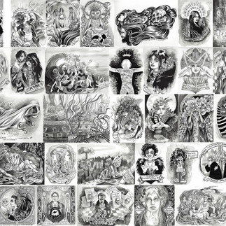 Né d’un "simple" défi lancé en 2009 - un dessin à l’encre par jour en octobre - Inktober est devenu pour moi un fil rouge. De 2014 à 2017, ce furent ce que je considère aujourd'hui comme des “sketchbooks géants” (ils vont servir de base à des projets/séries/toiles/...)